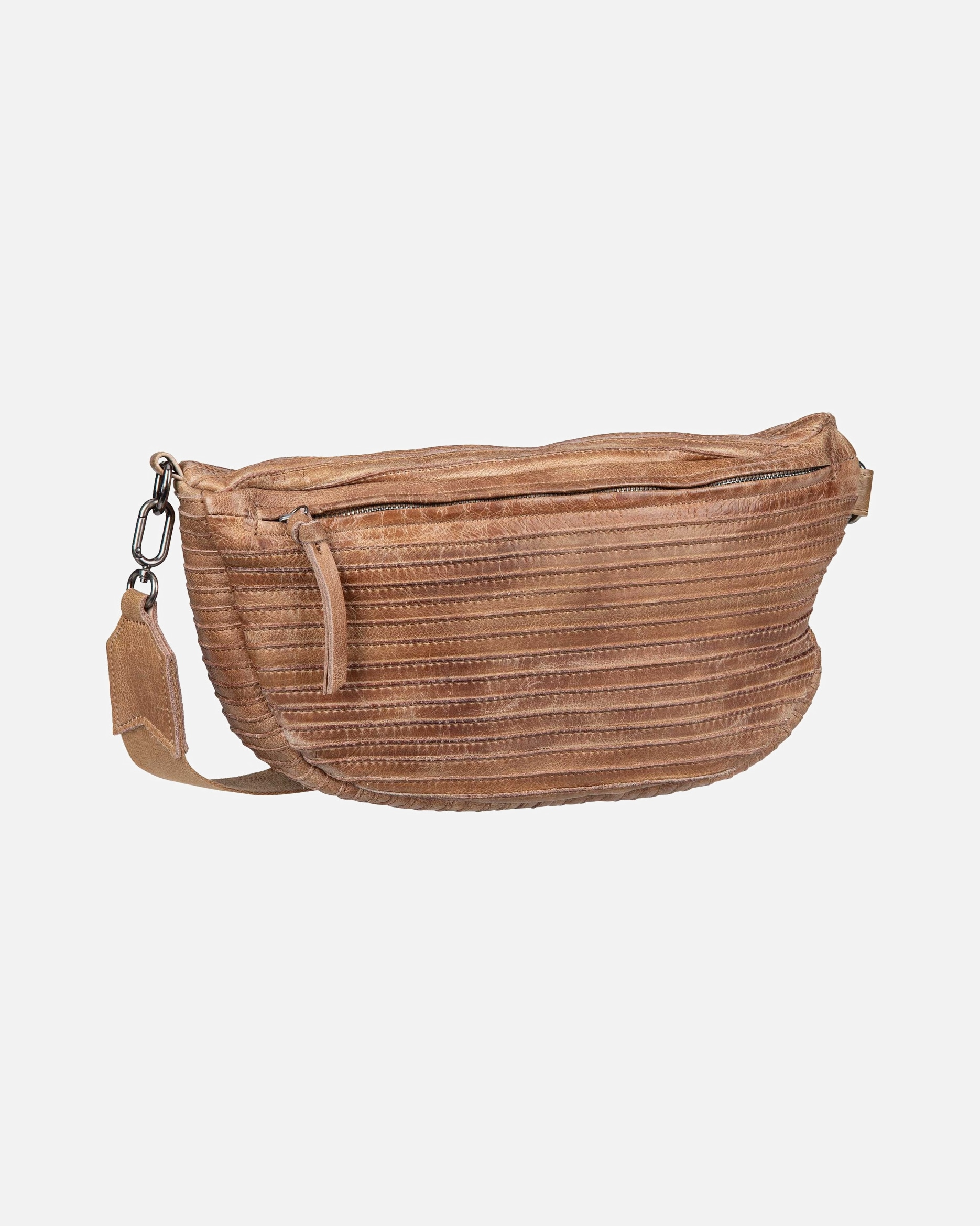 - Edel: Bauchtaschen aus feinem Leder oder Kunstleder wirken besonders elegant. Ob genarbt, in Kroko-Optik oder weich und glatt: Mit einer ledernen Ausführung bist du immer stilvoll unterwegs.